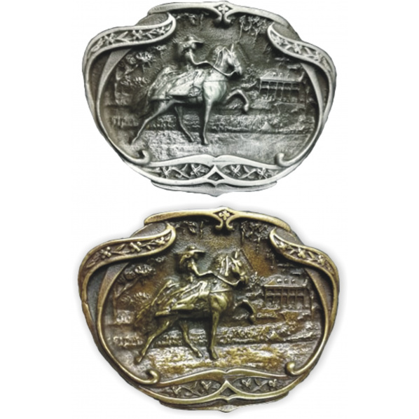 Stylová kovová přezka na opasek ve dvou barevných variantách vyrobena z kvalitního materiálu a v precizním zpracování. Pro opasky široké 4 cm.