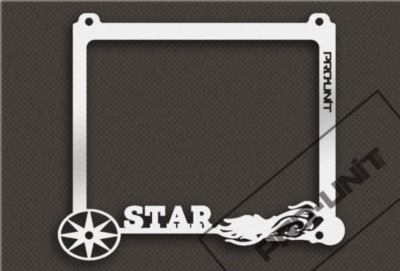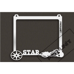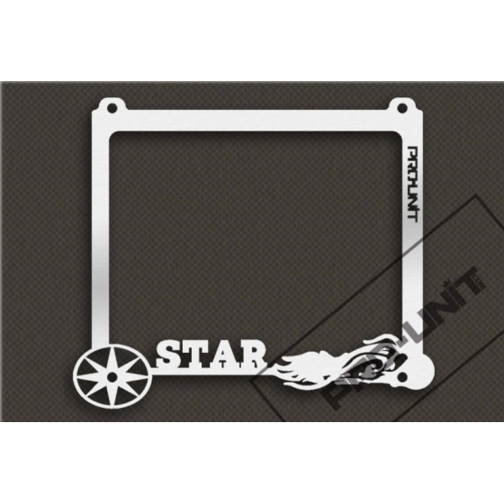 Ozdobný rámeček je vyroben z leštěné nerezové oceli. Součástí rámečku je ocelová podložka pod značku a čtyři nerezové šrouby. Rámeček je zhotovený na přesný rozměr motocyklových SPZ používaných v České republice.