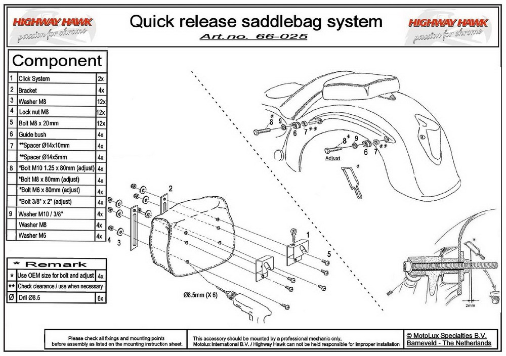 Rychloupnínací systém se zámkem HIGHWAY HAWK pro boční moto kufry/ pevné brašny