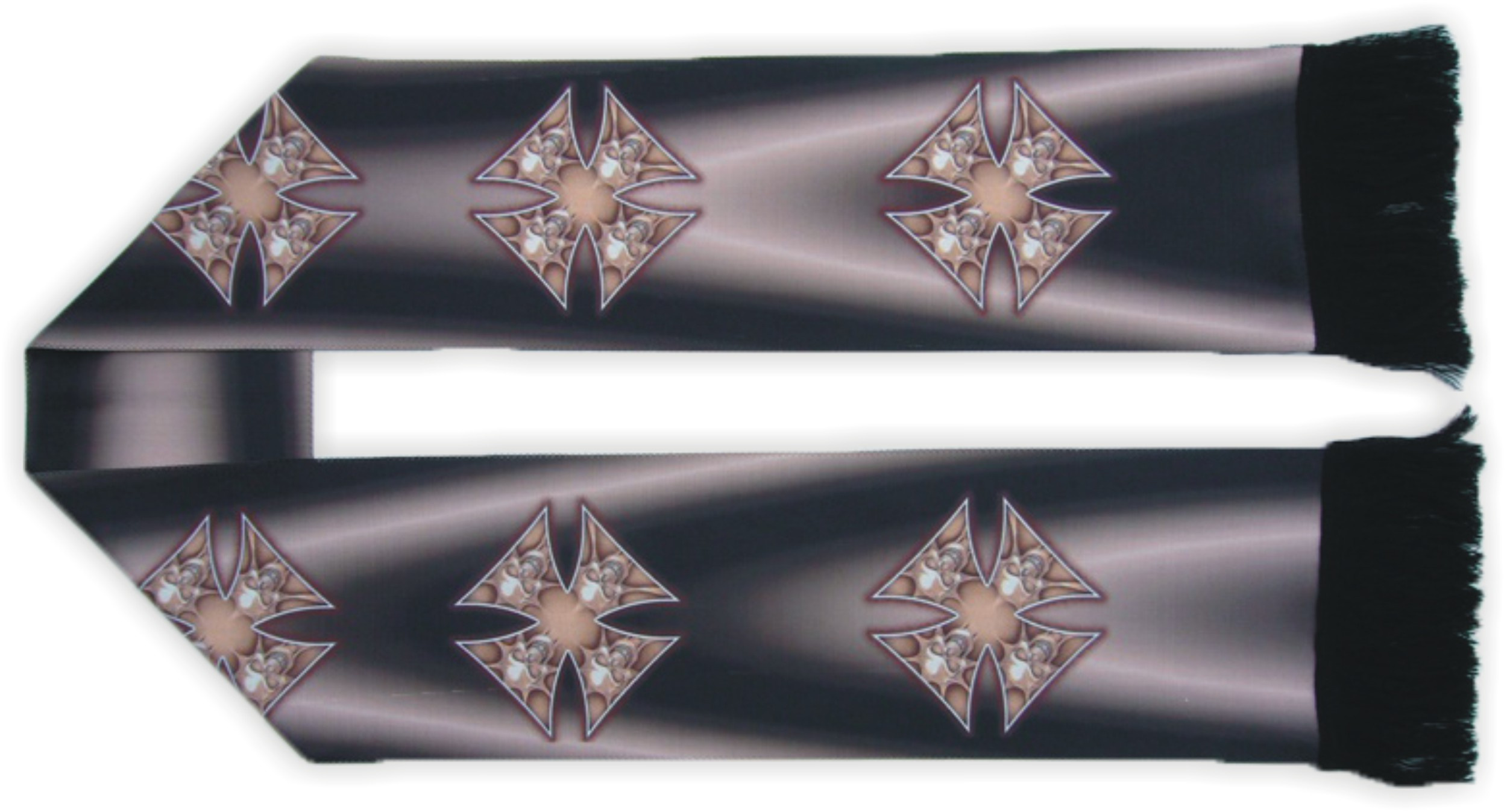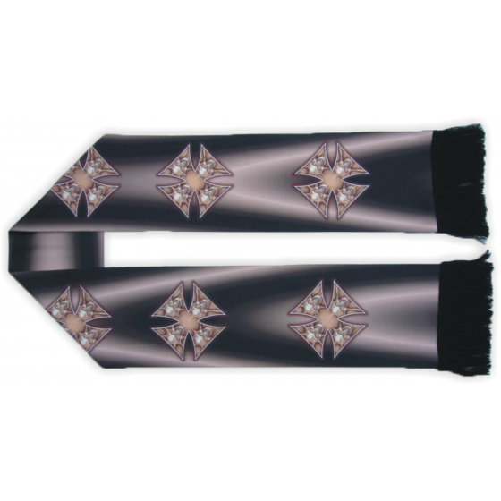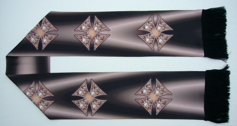 Šála s potiskem. Šála je upletena v české republice patentovanou technologí a poté potištěna, díky čemuž lze docílit vysoké kvality a rozlišení grafiky. Potisk není omezen počtem a odstíny barev.