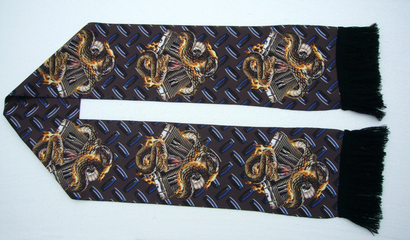Šála s potiskem. Šála je upletena v české republice patentovanou technologí a poté potištěna, díky čemuž lze docílit vysoké kvality a rozlišení grafiky. Potisk není omezen počtem a odstíny barev.