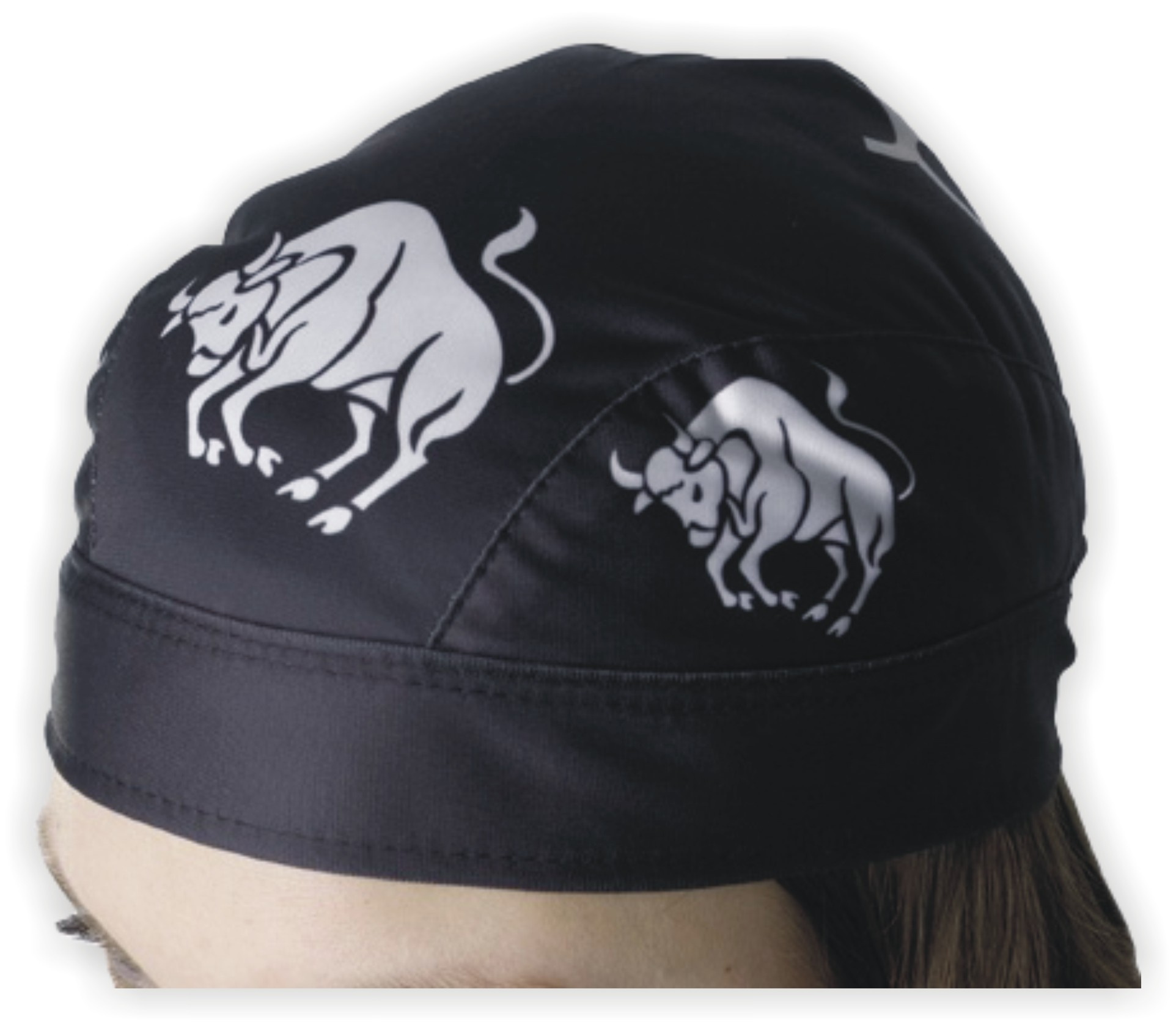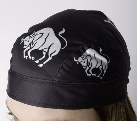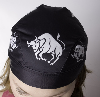 Kvalitní textilní šátek-čepička na hlavu se stylovým potiskem.