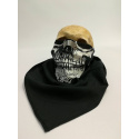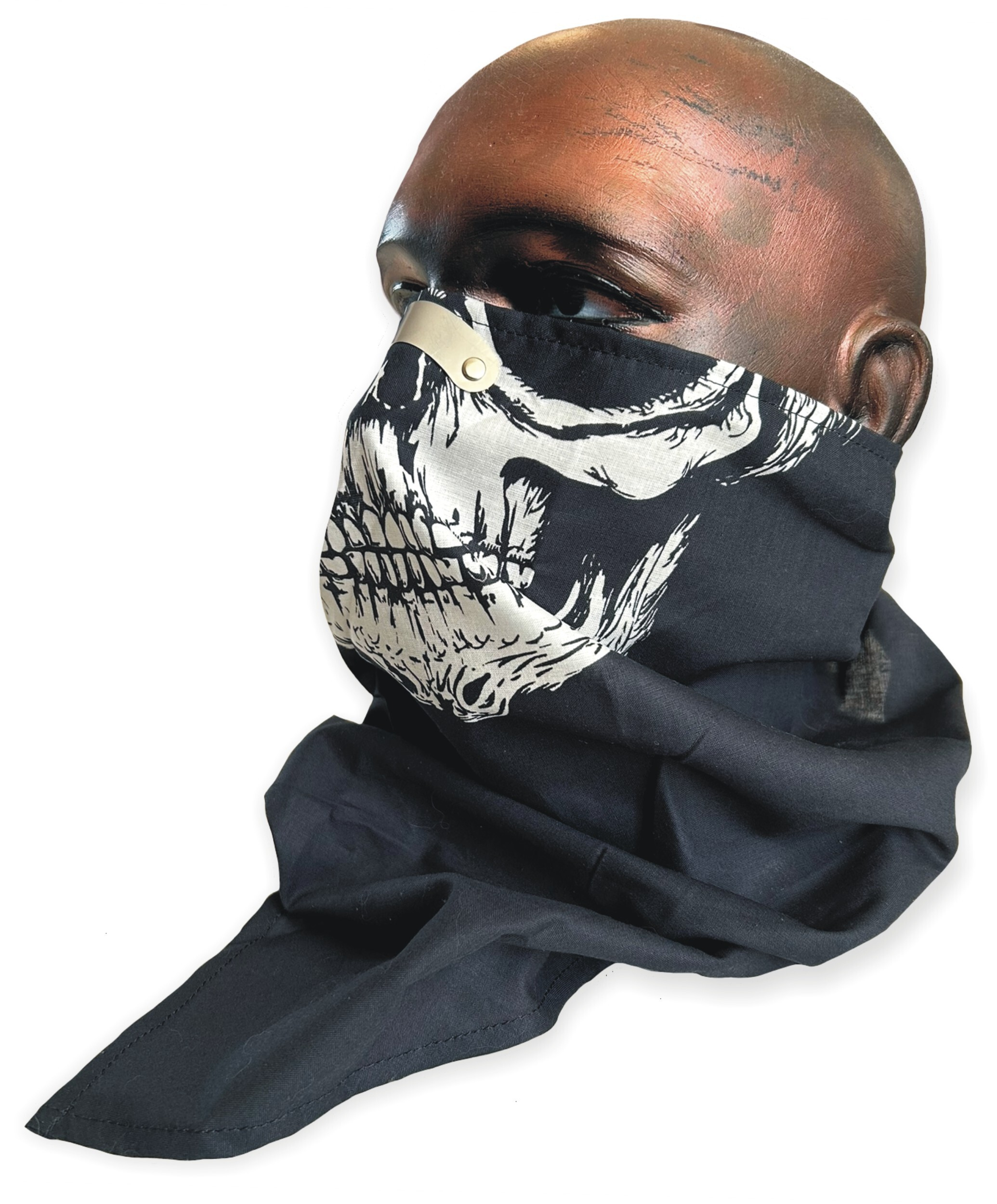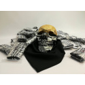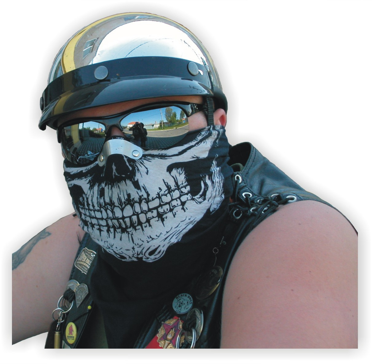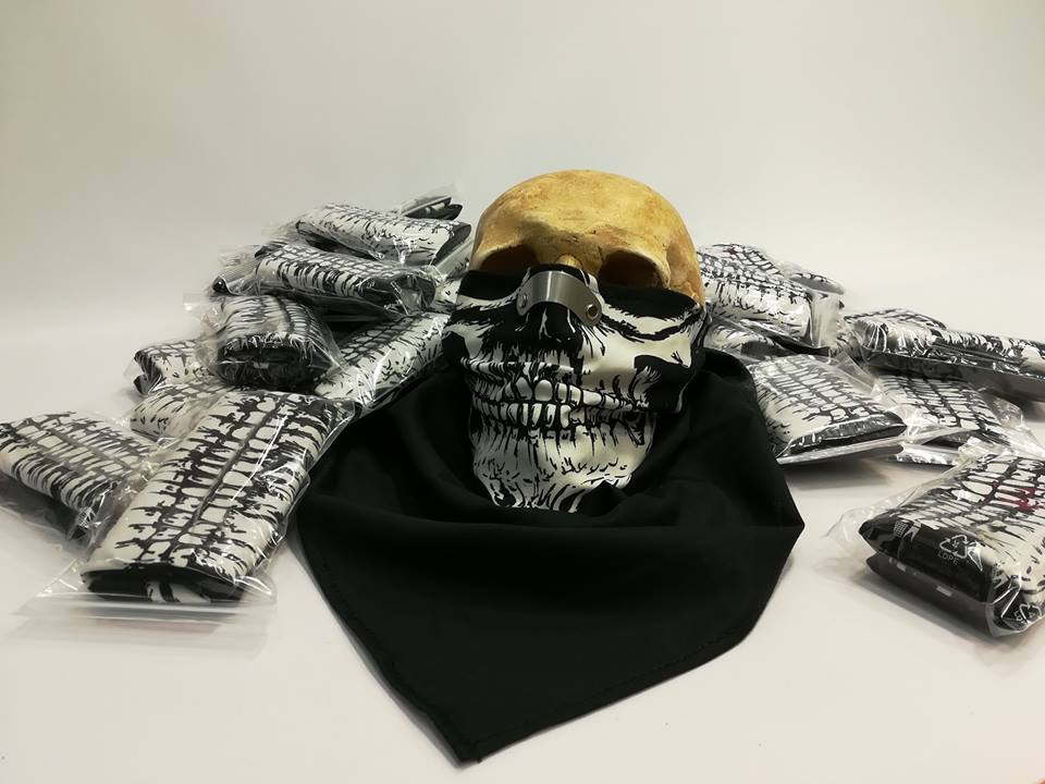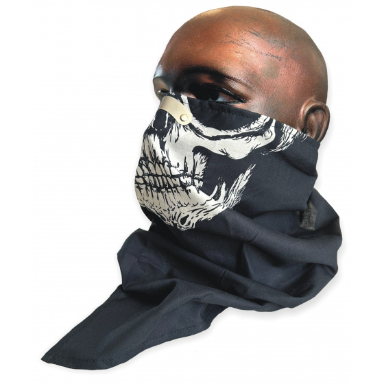 Velký trojúhelníkový šátek s kovovým skřipcem na nos a s jedinečným motivem. Díky kovovému skřipci, který lze vytvarovat podle tvaru nosu, šátek drží na obličeji i při vyšších rychlostech. Díky materiálu a technologii tisku je prodyšný, ale přitom chrání obličej před větrem, hmyzem ap. Šátek na obličej/hlavu upevňujeme zavázáním cípů šátku. Vhodný doplněk k otevřeným helmám.