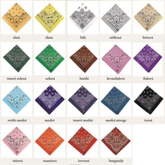 Šátek s květinovými vzory, styl oldwestern. Materiál: 100% bavlna Velikost: 55 x 55 cm