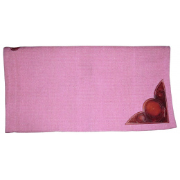 Show pad - show deka/přehoz mezi podsedlovou deku a sedlo z novozélandské vlny. Super měkký a zároveň velmi pevný, v různých zářivých barvách, doplněný koženým zdobením v rohu z prvotřídní kůže Sadesa zdobeným květinovými vzory. V kůži jsou dírky pro možnost ozdobení končaky.