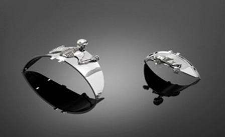 Universální samolepící soška SKULL s oboustrannou pěnovou lepenkou, tvar kostry. Určeno na zaoblené povrchy (blatník, světlo, ...)