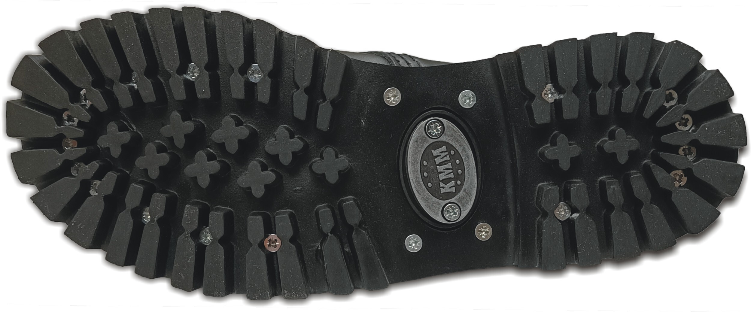 Zvršok je ušitý zo silnej hovädzej usne, v špici je vložená oceľová kaplnka. Odolná originálna polstrovaná podrážka KMM The original boots s výškou 2 cm, podpätok má výšku 3,5 cm, s výraznou vzorkou, nerezovými skrutkami a logom výrobcu. Trojité švy zaručujú dlhodobú odolnosť. Oproti vzhľadovo podobným topánkam iných výrobcov sa obuv KMM vyznačuje vysokou akosťou použitých materiálov, precíznym spracovaním a skutočne dlhou životnosťou. V každom balení nájdete aj jedny náhradné šnúrky.
