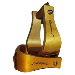 Kvalitní dřevěné, silně lakované dobytkářské třmeny. Uchycení k řemenům a nášlapy z vysoce kvalitní kůže.
