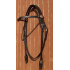 Kožená uzdečka s čelenkou do V zdobená drážkou a končem (kulaté s hvězdou), cena obsahuje i podbradní řemínek.