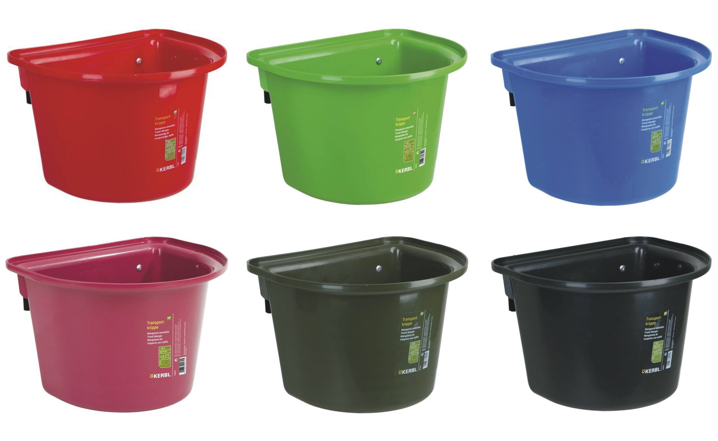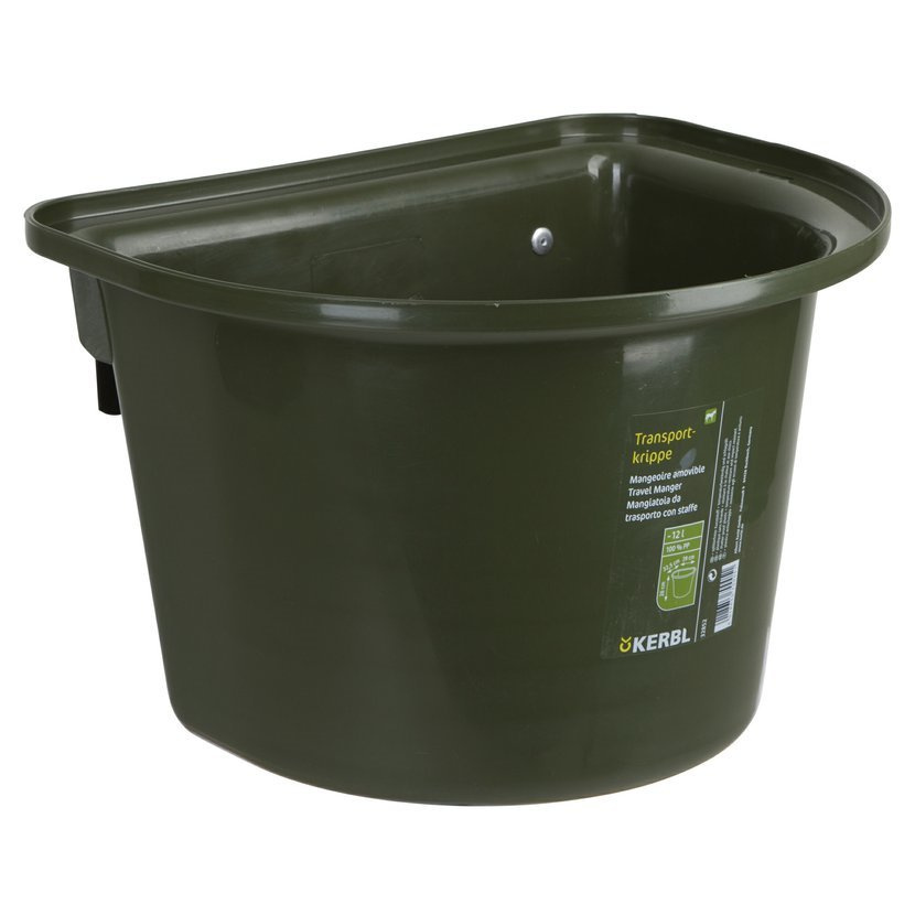 Vědro stájové závěsné o objemu 12l s kovovými držáky k zavěšení vhodné i použití (montáž) do přívěsů pro převážení koní.