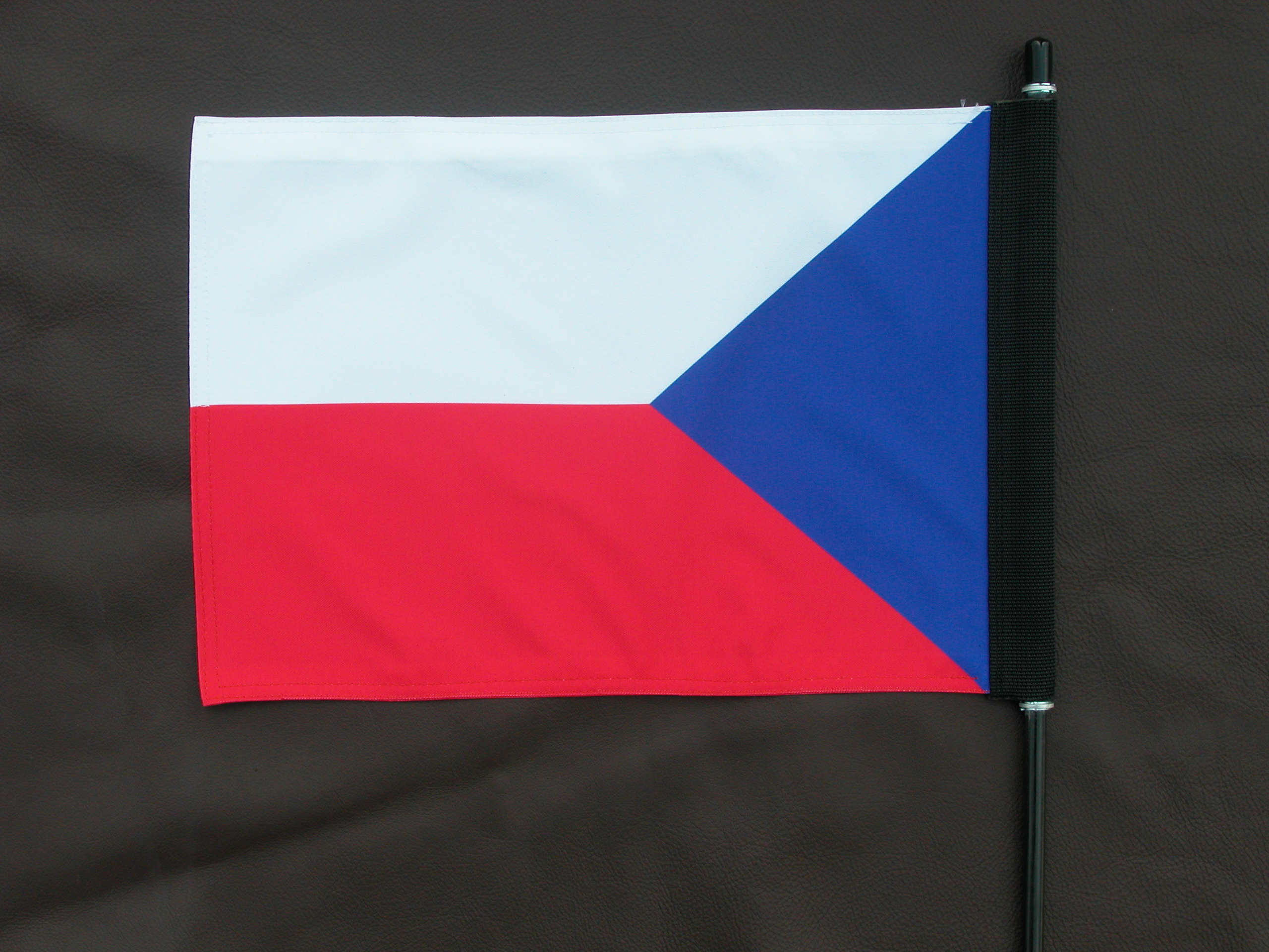 Vlaječka na motorku. Vysoce kvalitní zpracování a materiál, 2x obšitá, vydrží bez roztřepení mnoho kilometrů. Na tyčce upevněná pomocí tunelu, takže se otáčí a nezamotá. Tyčka ze sklolaminátu, lze lehce zkrátit pomocí pilky na železo.
