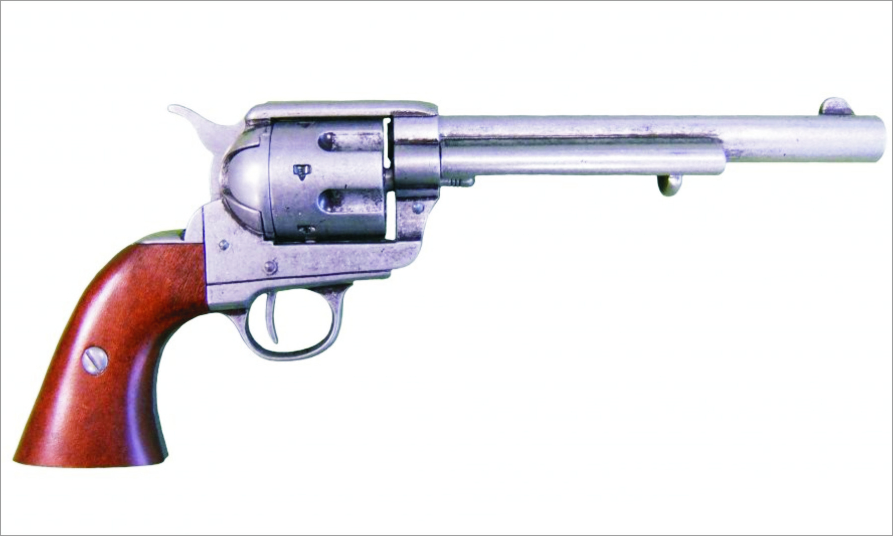 Legendární colt Peacemaker, vzor 1873, ráže .45. Revolver je víceranná ruční palná zbraň, v níž jso