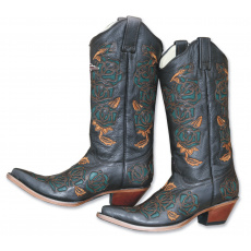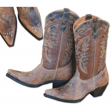 Šněrovací westernové boty zdobené výšivkami. Měkká polstrovaná stélka, podšívka a pata jsou vyrobeny