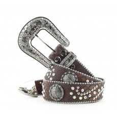 Sexy westernový opasek zdobený lesklými kamínky a nýty, s vyměnitelnou přezkou. Barva: hnědá Ma