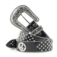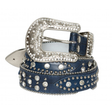 Sexy westernový opasek zdobený lesklými kamínky a nýty, s vyměnitelnou přezkou. Barva: černá Ma