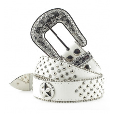 Sexy westernový opasek zdobený lesklými kamínky a nýty, s vyměnitelnou přezkou. Barva: bílá Mat