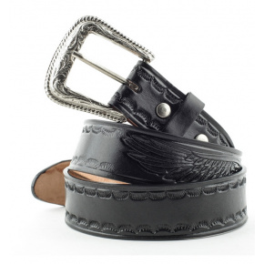 Kvalitní kožený opasek se zdobením a stylovou přezkou.