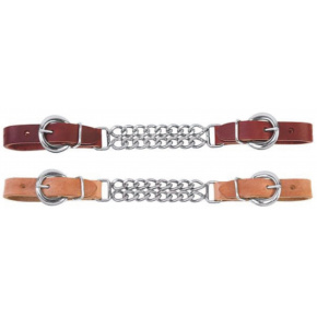 Kvalitní stylový podbradní řemínek vyroben z měkké poddajné harnes kůže se 2 řadami plochého řetízku