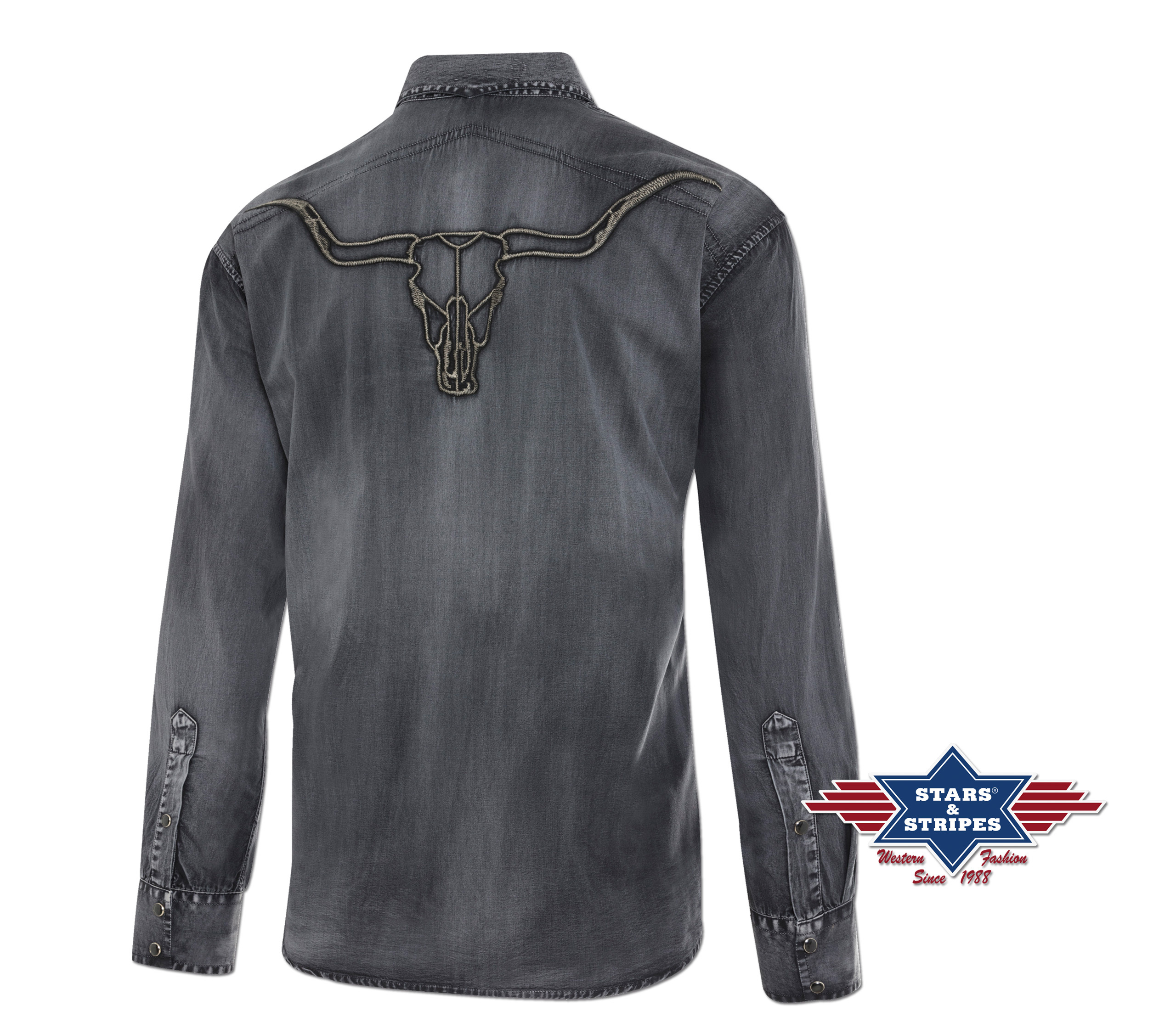 Stylová westernová košile s výšivkou býčí hlavy na zádech.