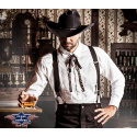 Noblesní westernová košile volnějšího střihu s krepováním na hrudníku, zapínání na druky do půky košile (oblékání přes hlavu), manžety.