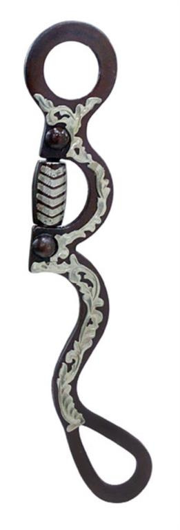 Westernové pákové udidlo zdobené stříbrným gravírováním, s měděnými válečky.