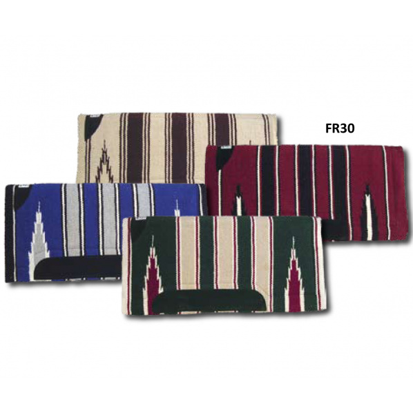 Popis výrobku westernová podsedlová deka Blanket TraditionalPodsedlovka v tradičním provedení, spodek vlněný filc. Velikost: 30" x 30" Barva: béžová-hnědá, bordo-černá, modrá-šedá, zelená-béžová Tloušťka filcu: 1"