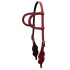 Kožená uzdečka na dvě uši Wickett & Craig zdobená jemným basketem a koženým končakem. Podšitá jemnou telecí kůží, ozdobné prošití po obvodu. Řemínky pro udidlo nutno objednat zvlášť.