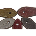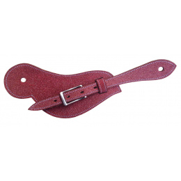 Hladké westernové kožené řemínky k ostruhám z vysokojakostní kůže zdobené barevnou kůží s třpytivým povrchem, obšité a podložené telecí kůží. Nerezové kování.
