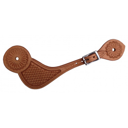 Westernové kožené řemínky k ostruhám z vysokojakostní kůže zdobené jemným basketem. Nerezové kování.