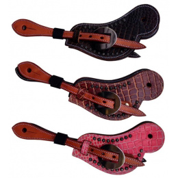 Westernové kožené řemínky k ostruhám z kolekce West Coast s hadím vzorem zdobené ozdobnými nýtky, dvoubarevné provedení, nerezové kování.