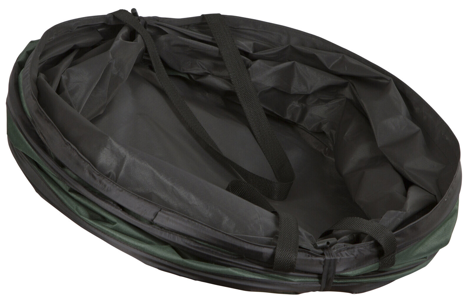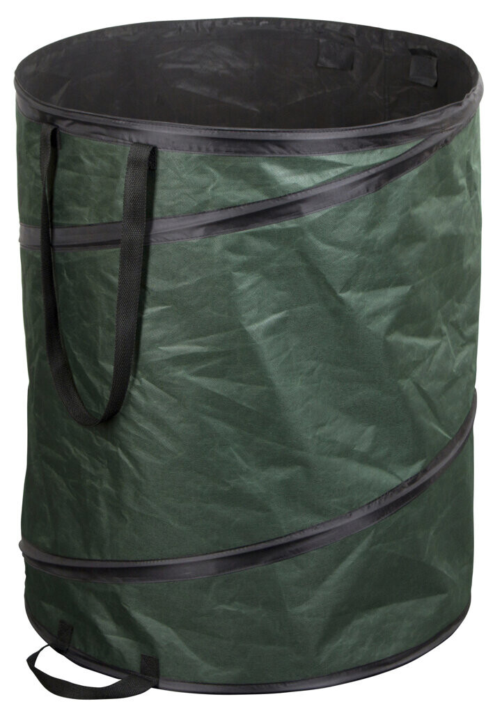 Skládací zahradní vak s výztuží Pop-up vhodný na dávkování sena, na listí ap. Samostatně stojící díky všitému předpjatému kruhu Pop-up, robustní, vůči roztržení odolná a velmi pevná polyesterová tkanina (600D), vodoodpudivá povrchová úprava, 2 dlouhé rukojeti k přenášení a další rukojeť na spodní straně pro snadné vyprazdňování.