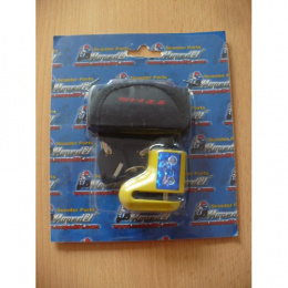 Zámek brzdového kotouče RMS Micro. Materiál: ocel Čep: 6 mm Rozměr: cca 45x45x25 mm Barva: žlutá