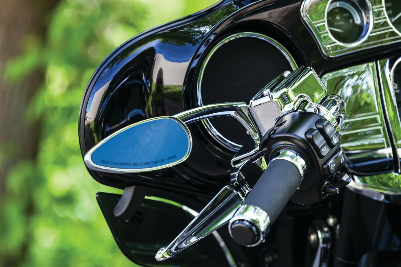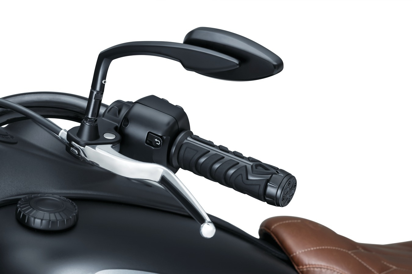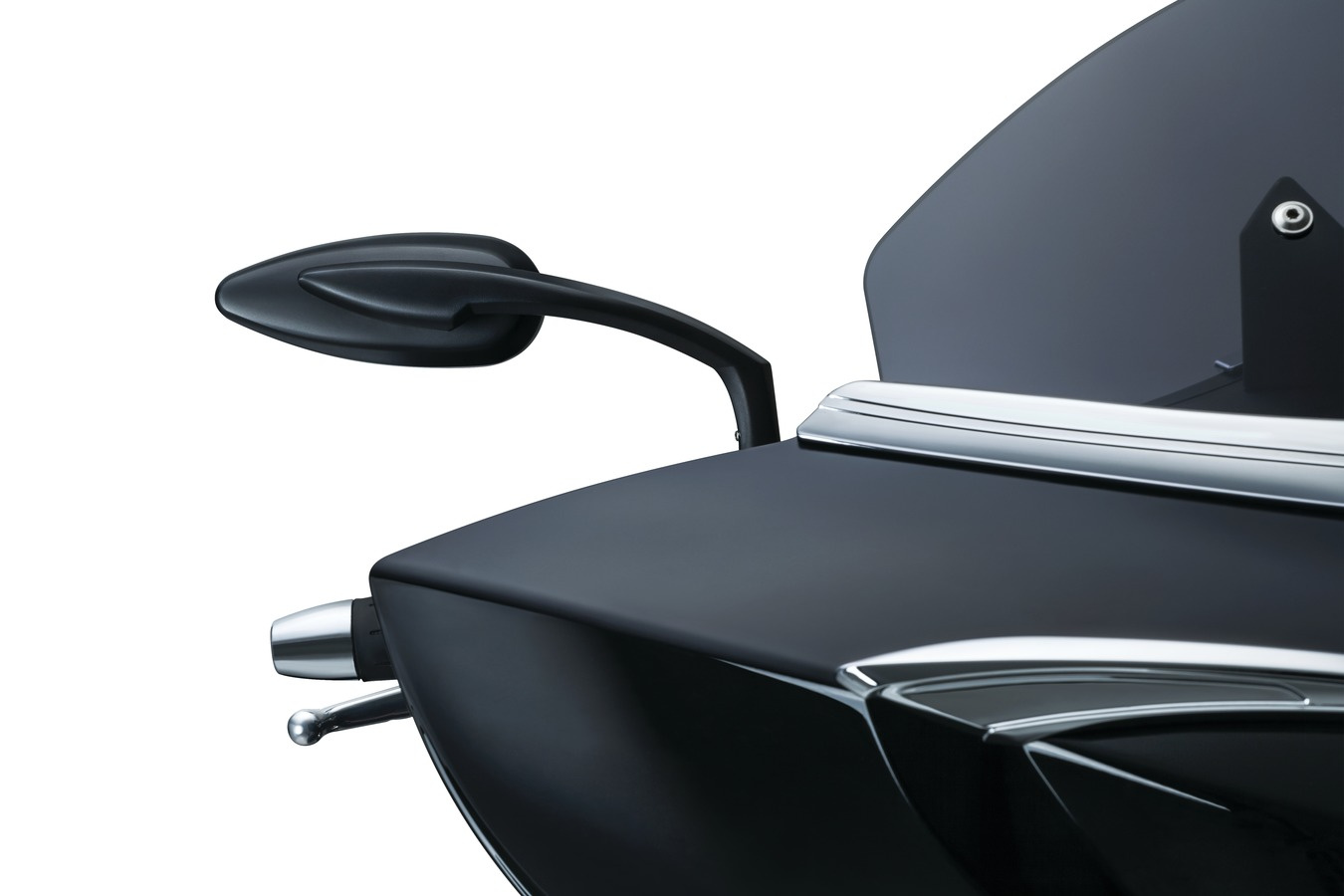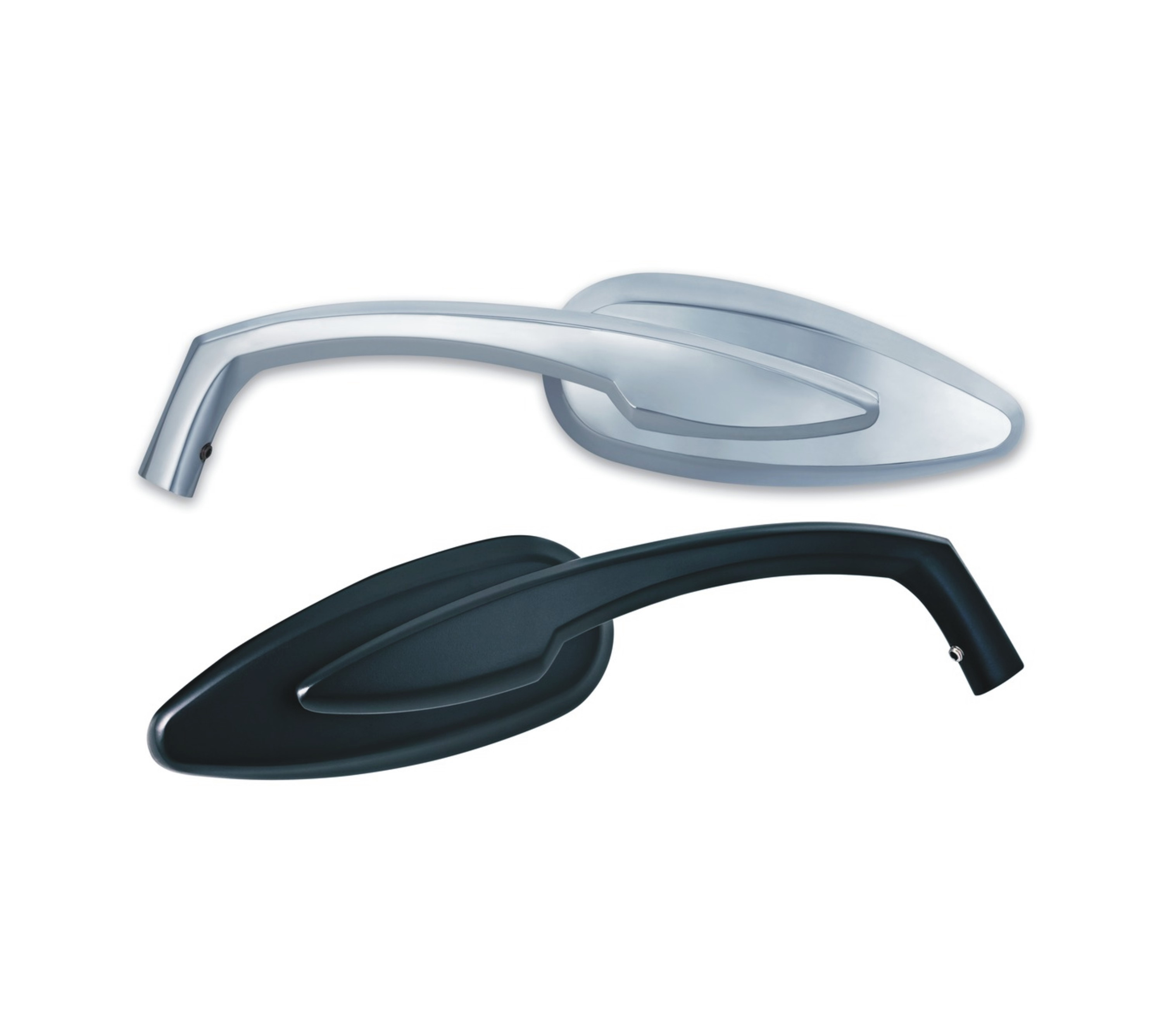 Zrcátka Kuryakyn Teardrop na nízkých nožičkách v elegantním stylu zachovávají výbornou funkčnost díky vypouklým sklům, které rozšiřují zorné pole. Rozměry zrcátka jsou 5" (125 mm) x 2" (50 mm), nožička vysunuje zrcátko o 125 mm vně a 75 mm nahoru.