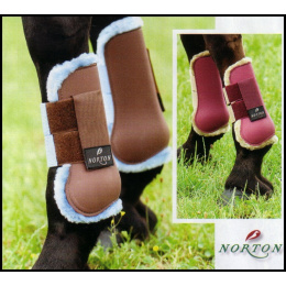 Kvalitní ochrana při zachování vysokého komfortu:anatomický plastový výlisek chrání šlachu před nárazy a dvojitá vrstva umělého beránku zajištuje pohodlí koně. Jednoduché zapínání na dvojité suché zipy s elastiským dotahováním, které rozkládá tlak.