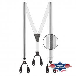 Kšandy s koženými sponami na připevnění ke kalhotám pomocí knoflíků. Typ "Y".