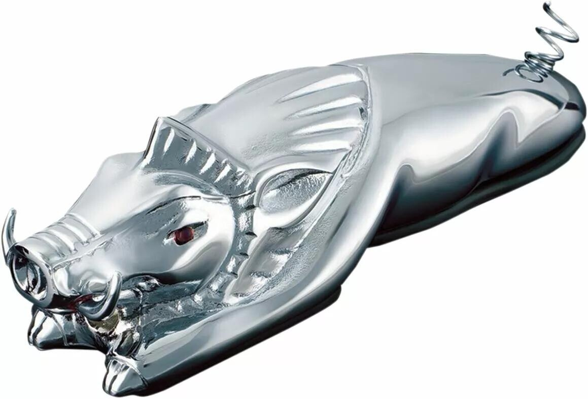 Stylová soška/světlo pro umístění na přední blatník motocyklu Divočák, kterému svítí oči. Dvouplášťová konstrukce umožňuje snadnou instalaci a výměnu žárovky. Montáž pomocí šroubů pasuje na většinu blatníků. Balení obsahuje pěnovou podložku a montážní materiál. Napájení 12V.