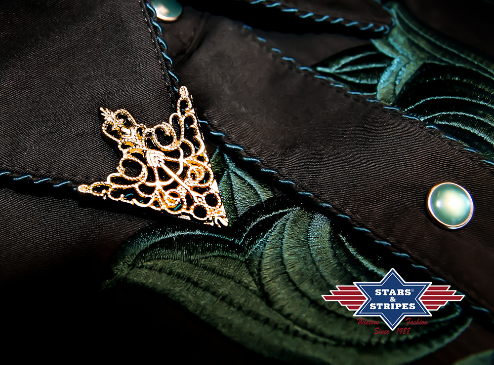 Ozdobné špičky/růžky na límec košile s plastickým zdobením a kamenem.