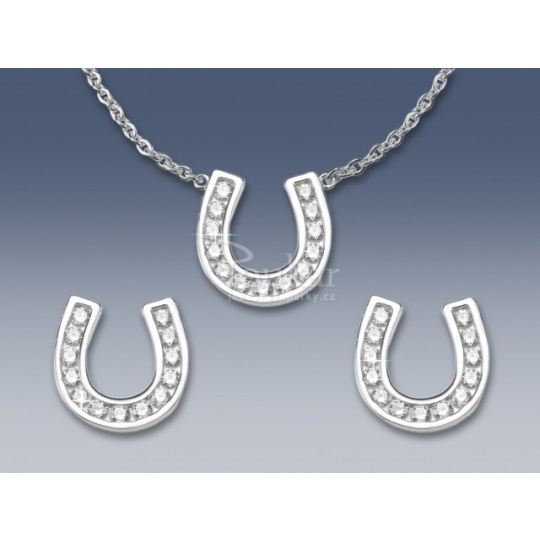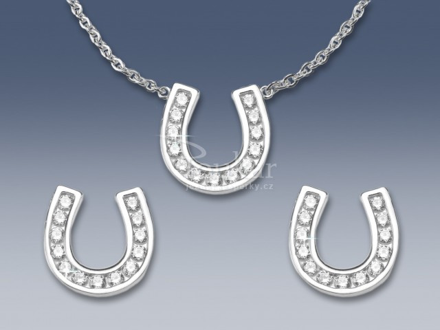 Elegantní stříbrný náhrdelník a náušnice na šroubek ve tvaru podkovy celkem s 39 zirkony nejvyšší kvality, která je na našem trhu k dostání, tzv. STAR CUT.
