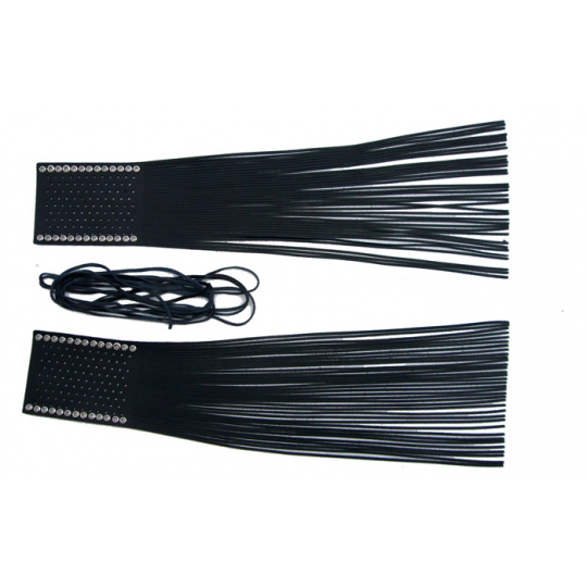 Krásné a kvalitní kožené třásně na řídítka. Pasují na všechny typy gripů, uchycení šněrováním, lze nastavovat průměr, podložené měkkou vložkou pro komfortní používání, zdobené kovovými kroužky.