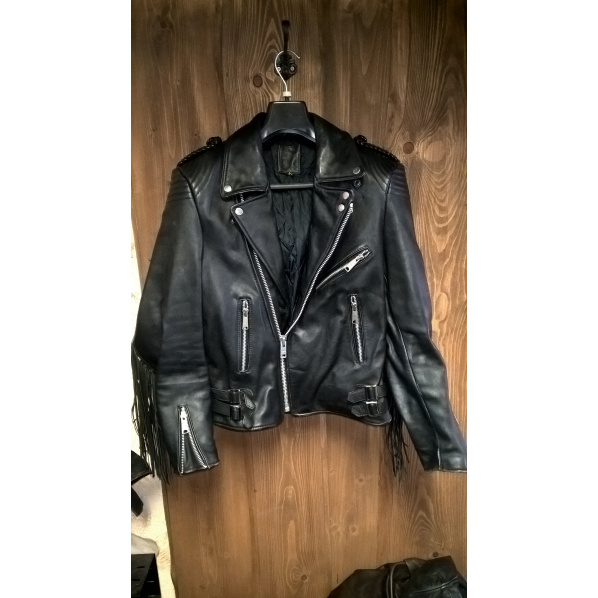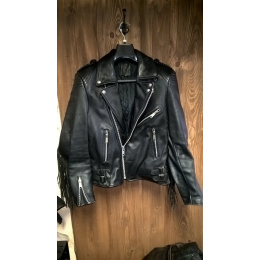 Popis produktu kožený křivák s třásněmiKožená bunda (křivák) s třásněmi a pletenými nárameníky. Velikost: 52 (hrudník cca 90 cm) Materiál: kůže Barva: černá Stav: použitý, moc pěkný, jako nový