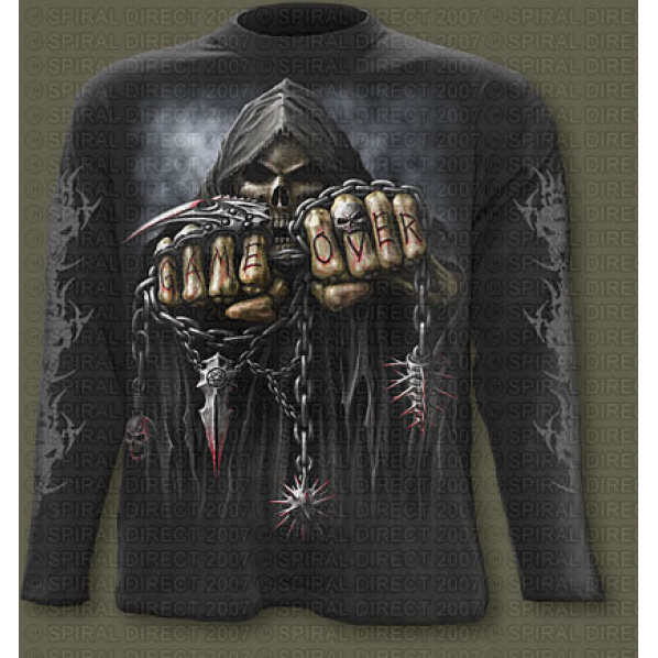 Popis produktu tričko s dlouhým rukávem s motivem Game OverBarvačernáHlavní materiálbavlnaHlavní vzorsmíšené vzoryVýstřihbez límceVěk0 +Černé tričko s dlouhým rukávem a velmi kvalitním potiskem zepředu, zezadu i na rukávech. Velikosti: M,L,XL,XXL
