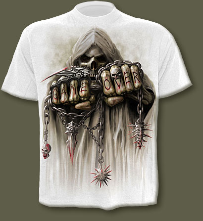 Černé nebo bílé tričko s velmi kvalitním potiskem.