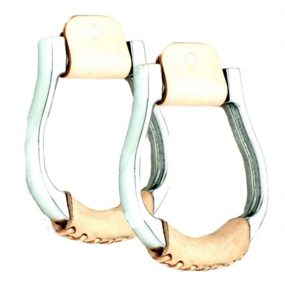 Úzké hliníkové třmeny s koženými nášlapy.