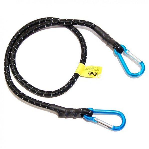 Popis produktu upínací gumaUpínací guma s karabinkami místo háčků. Barva: černá s bílými proužky, karabina modrá Délka: 100 cm Průměr: 10 mm