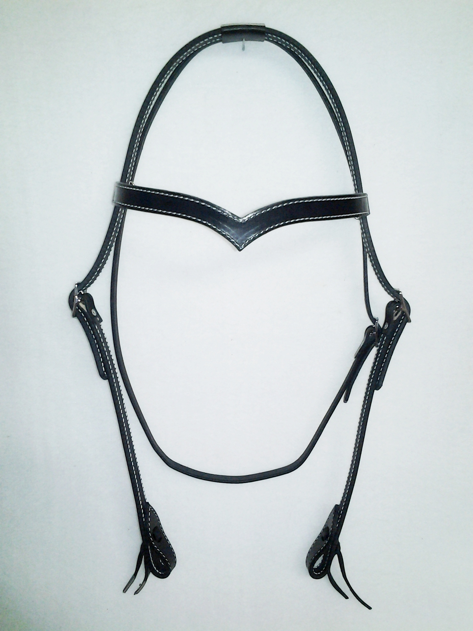 Kožená uzdečka s čelenkou do V zdobená prošíváním, cena obsahuje i podbradní řemínek.