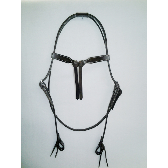 Kožená uzdečka s čelenkou s uzlíkem zdobená prošíváním.
