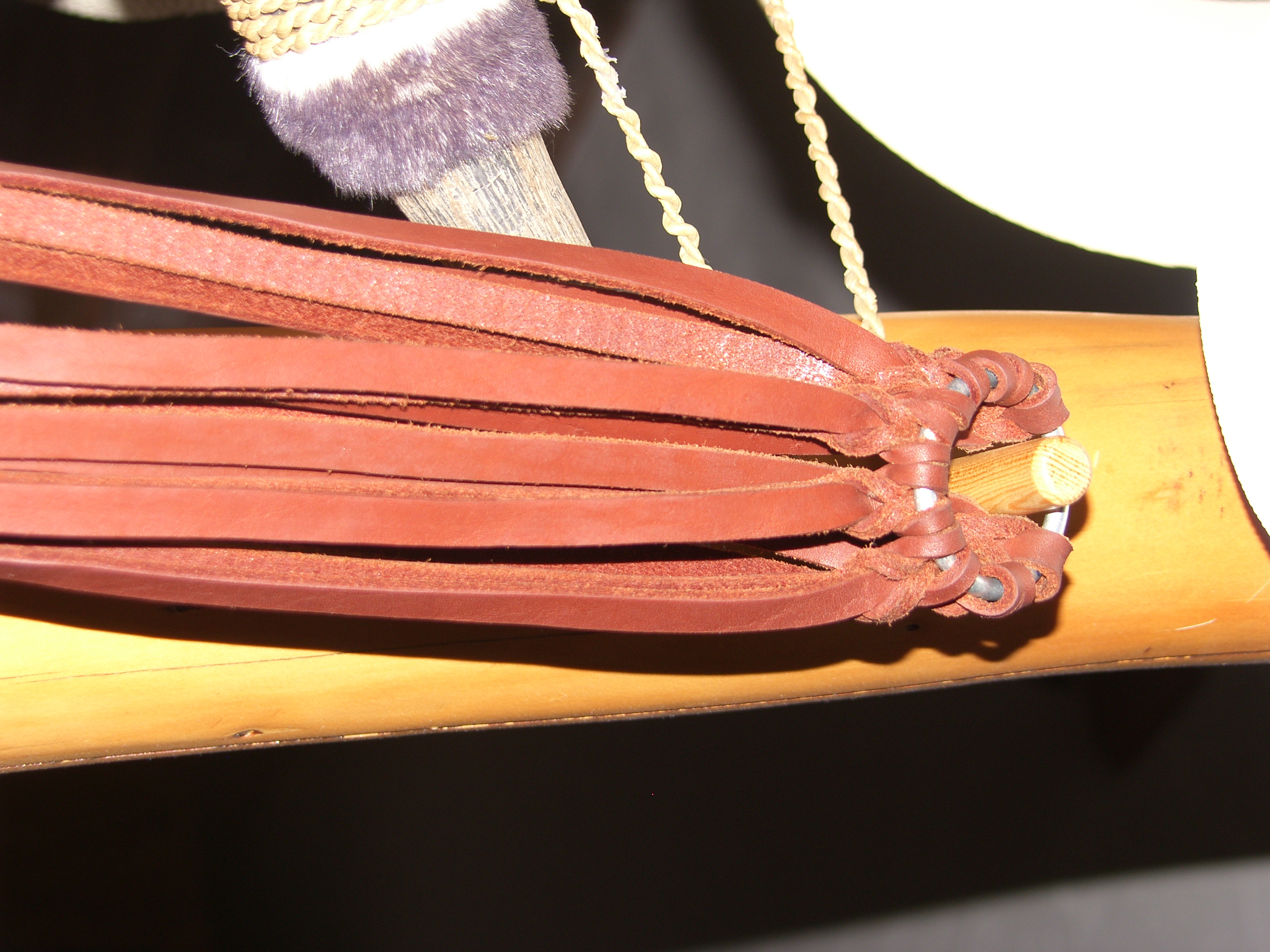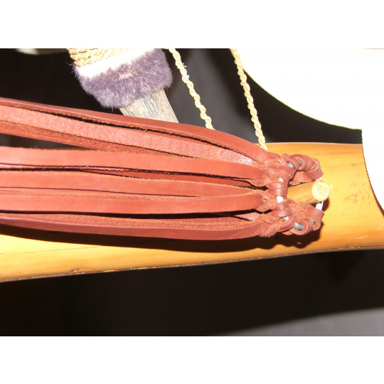 Kožené řemínky k sedlu. Ve střední části dva prořezy pro prostrčení a uvázaní ke kroužku, karabině nebo poutku. Praktická a stylová pomůcka pro připevnění břemena, oblečení ap. k sedlu nebo postroji.