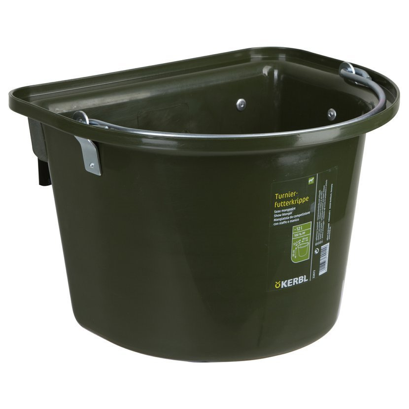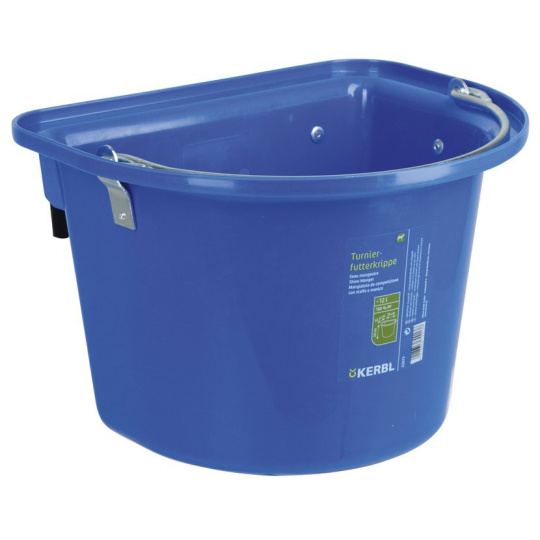 Vědro stájové závěsné o objemu 12l s kovovými držáky a uchem pro pohodlné přenášení.