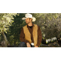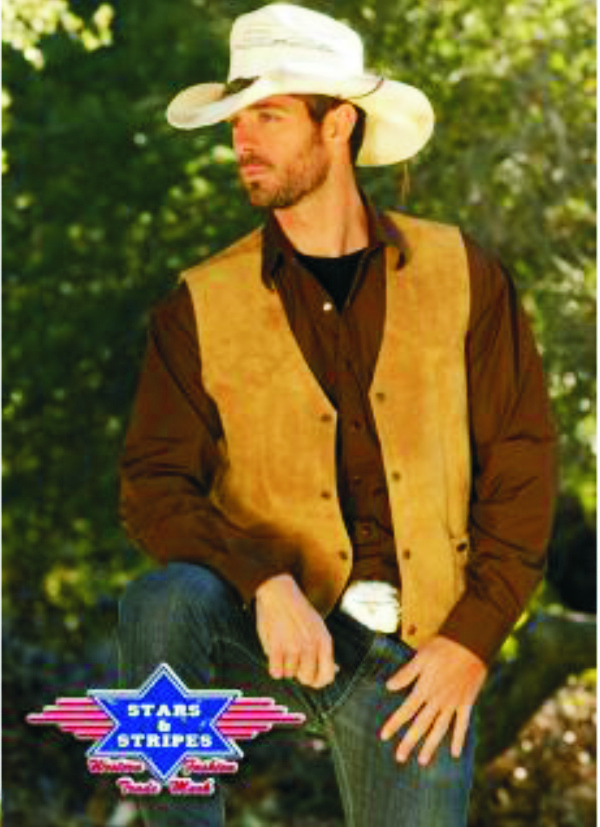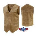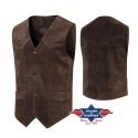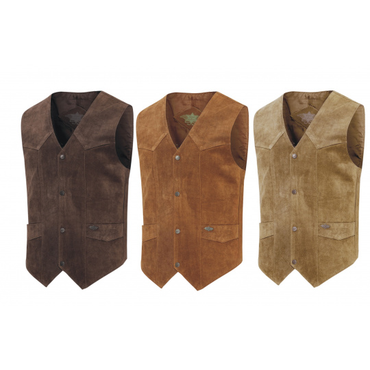 Klasická westernová vesta z kvaklitní broušené kůže s kovovými knoflíky.