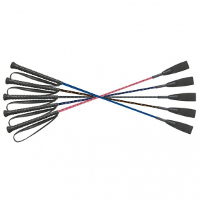 Klasický jezdecký bičík s barevným nylonovým opletem, gumovou rukojetí, poutkem a zakončen plácačkou
